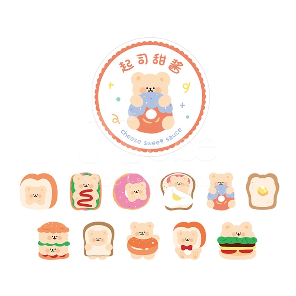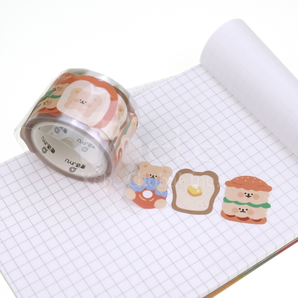 小熊早餐和纸胶带, 设计以可爱小熊搭配吐司、汉堡、煎蛋与甜甜圈为主题, 色彩温暖疗愈,每一格都像一份迷你早餐故事, 无论是装饰手帐、拼贴日记,或是点缀礼物包装, 都能轻松增添童趣与生活感,让小熊陪你开启美好的一天!